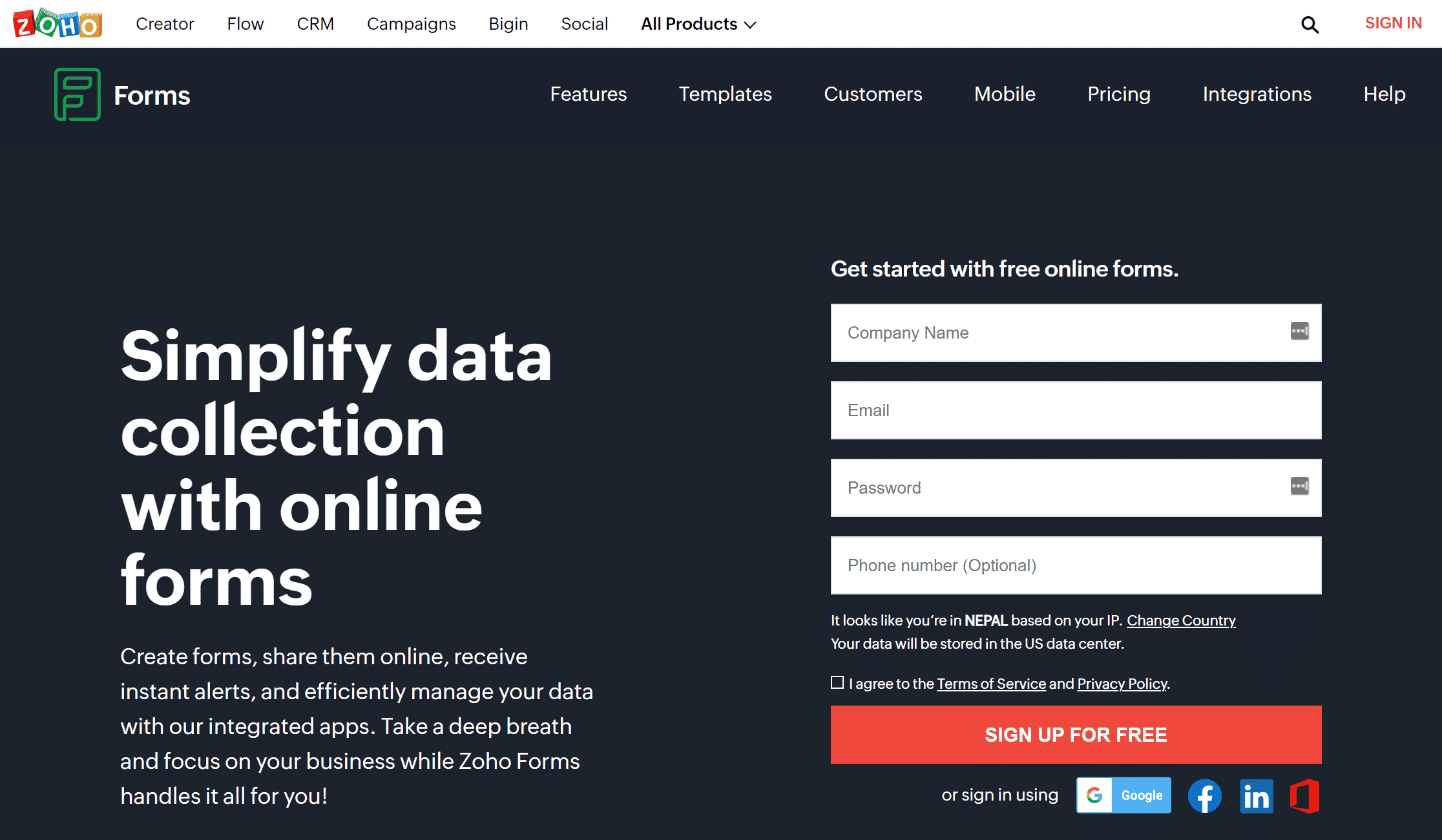 - القوالب: توفر Zoho Forms قوالب نماذج خاصة بالأعمال للصناعات الطبية والبناء والموارد البشرية والتعليم وغير الربحية والصناعات الأخرى.