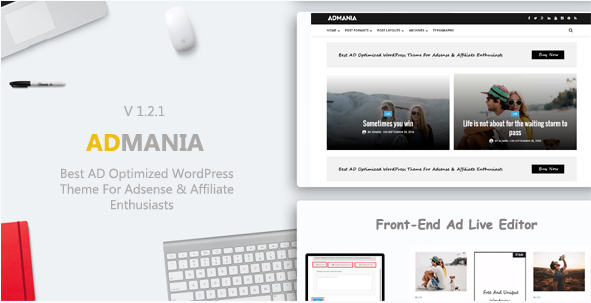 Admania هو موضوع WordPress مثالي حقًا للإعلان لمستخدمي Adsense والمسوقين التابعين للحصول على أرباح عالية عبر الإعلانات عن طريق زيادة الصحافة من خلال الرسوم (CTR).