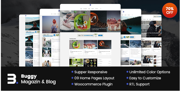 Buggy هو موضوع بخيارات تخطيط فاخرة ، مصمم ليكون متميزًا في جميع أنواع المدونات والحد الأدنى من المجلات. ليس من الأفضل أن تكون بدائل التصميم المتكاملة في الوقت الحاضر جميلة من الناحية الجمالية ، فهي مليئة بمزيج من التنسيقات القابلة للتطبيق والمناسبة للمدونات والمجلات الأنيقة.