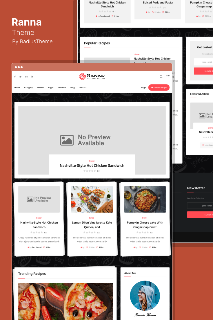 Ranna هي سمة Recipe WordPress يمكن تطبيقها على المدونين ومدونات الطعام وعشاق الطعام و RTL والمواقع الإلكترونية.