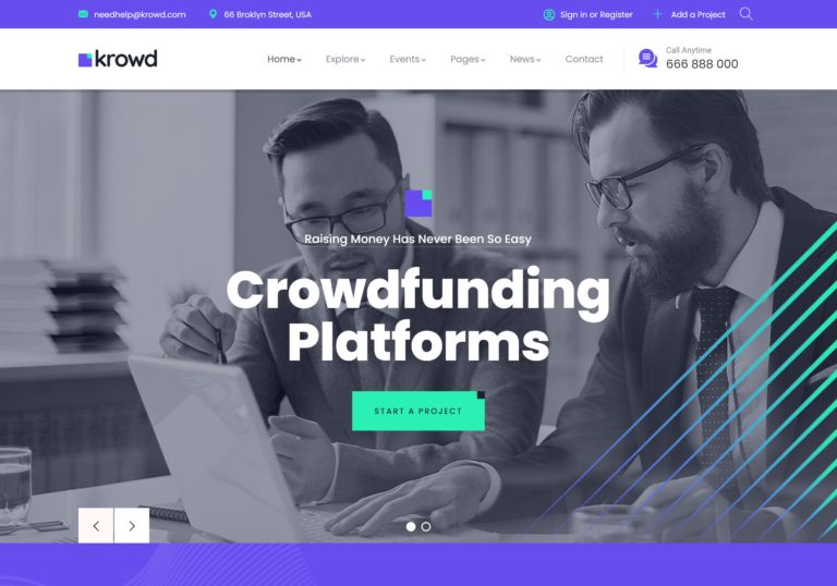 من خلال مجموعة من القوالب ذات التصميم المحايد ، يعد Krowd موضوعًا جيدًا شاملًا لإنشاء مواقع تمويل جماعي للعديد من أنواع المشاريع.