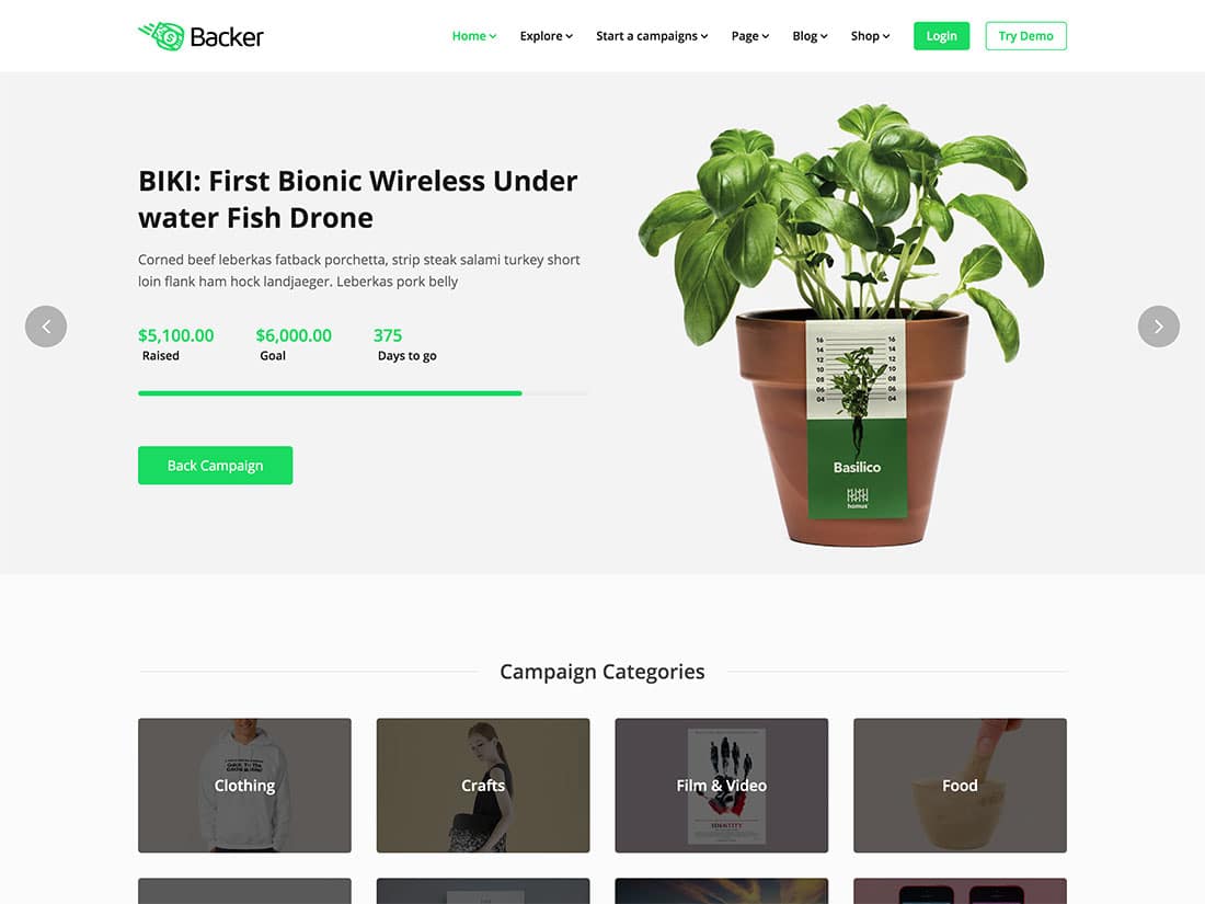 معبأ بجميع الميزات التي ستحتاجها لإنشاء موقع الويب الخاص بك للترويج لحملة واحدة أو بناء نظام أساسي للتمويل الجماعي حيث يمكن للأشخاص الآخرين الاشتراك ونشر حملاتهم ، يعد Backer بالتأكيد موضوعًا يجب مراعاته عند العمل في هذا النوع من المشاريع.