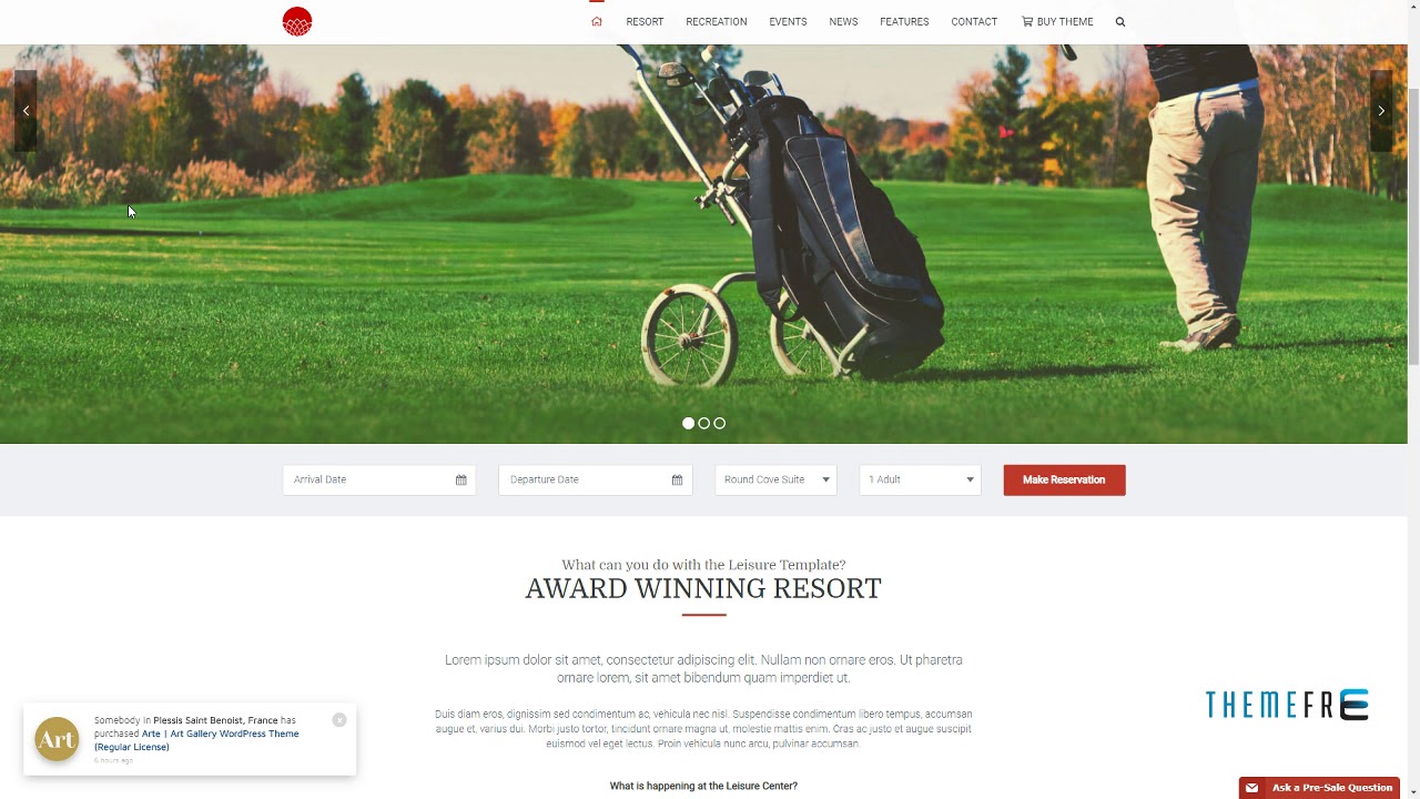 سيسمح لك المكون الإضافي المجاني في موضوع الجولف هذا بحجز المواعيد لـ WordPress خارج الصندوق. علاوة على ذلك ، يشتمل السمة على مكون إضافي لثورة WordPress.