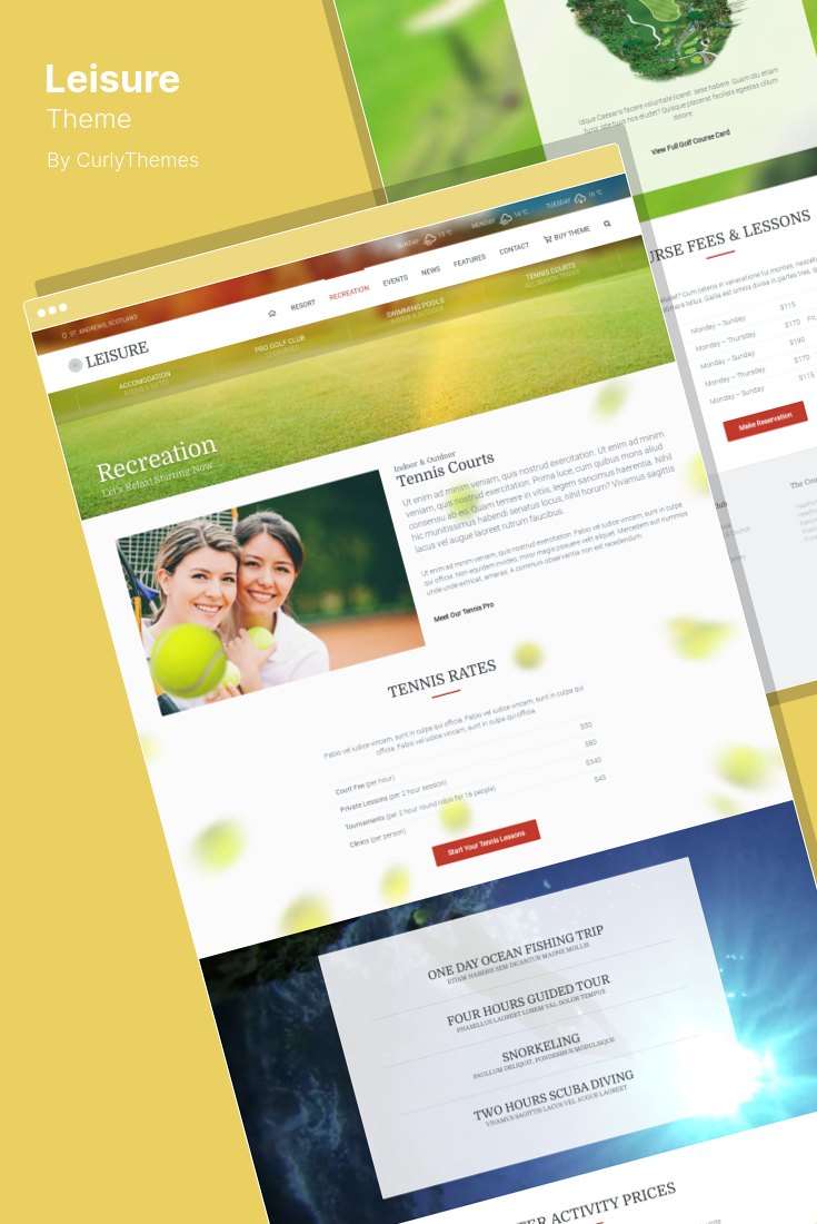 تم استخدام إطار عمل قوي لبناء السمة ، والتي تحتوي على نظام حجز متكامل ، مما يسمح لك بقبول الحجوزات عبر الإنترنت. يتوافق موضوع الجولف هذا أيضًا مع المكون الإضافي لـ Revolution Slider's Timeline ، وهناك العديد من الميزات الأخرى أيضًا.