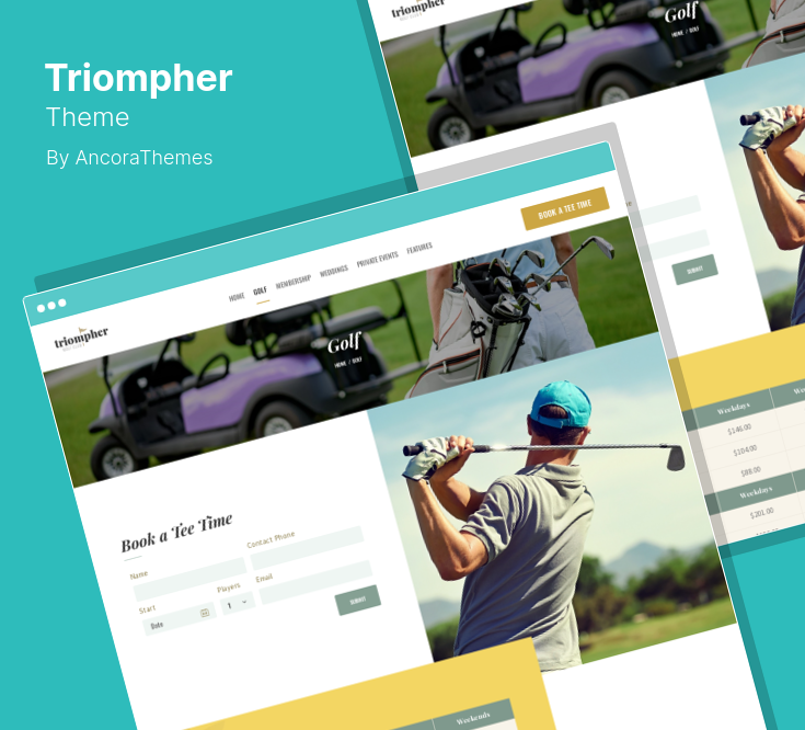 Triompher هو موضوع WordPress لملعب الجولف والنادي الرياضي مناسب للمدرب والحجز والتجارة الإلكترونية والمتجر والمواقع الإلكترونية.