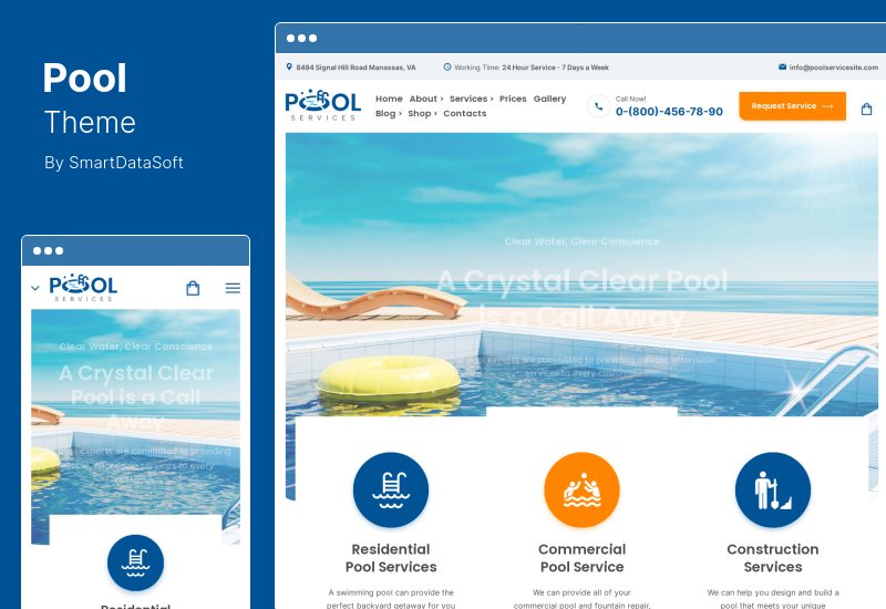 خدمة تنظيف وصيانة حمامات السباحة موضوع WordPress