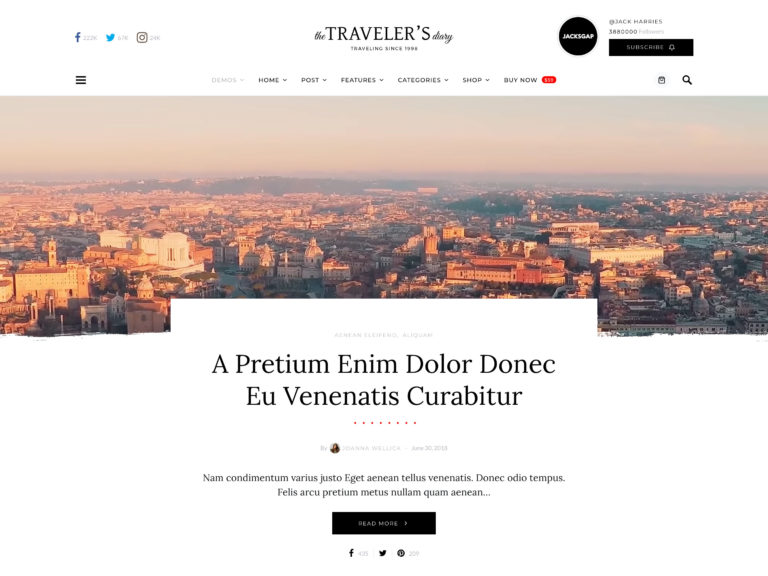 Overflow هو موضوع سفر وورد يمكن استخدامه لمجموعة واسعة من الاستخدامات ، خاصة للمواقع التي تركز على التصوير الفوتوغرافي. لذلك يمكن للمدونين والمنشورات عبر الإنترنت وكتاب نمط الحياة الاستفادة بشكل كبير من هذا الموضوع. يأتي مع تسعة عروض توضيحية مختلفة ، وقسم منشورات مميزة ، وأنواع متعددة لرؤوس الصفحات ، مما يجعل من السهل تنظيم المحتوى الخاص بك.