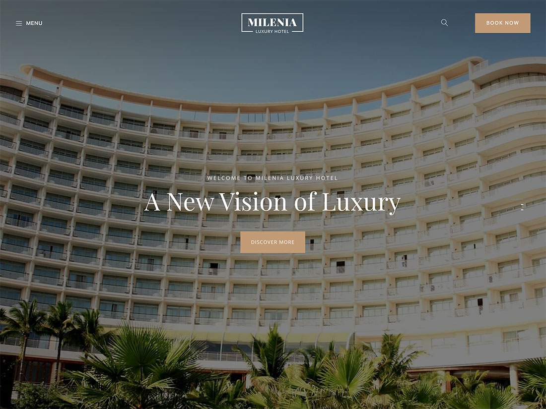 إذا كنت تدير وكالة سفر أو خدمة حجز الرحلات ، فيمكنك إنشاء صفحة حجوزات تحتوي على معلومات مفصلة حول حجوزات الفنادق ورحلات الطيران والجولات ، مع نماذج الاتصال والأسئلة الشائعة وإضافتها بسهولة على النحو الذي تراه مناسبًا. تعتمد قائمة الوجهة على صورة ملء الشاشة أو عرض الفيديو والتمرير السلس للمنظر لإبهار الزائرين بمرئيات عالية الدقة وتنقل سلس. تتيح لك وظائف القائمة الضخمة إنشاء كل شيء بدءًا من الشريط الجانبي إلى الرأس الشفاف إلى قوائم الشعارات القابلة للنقر بملء الشاشة. يمكنك تخصيص التنقل في القائمة ليشمل كل شيء من السبا والعافية إلى تصنيف أماكن الإقامة المختلفة التي يقدمها فندقك.