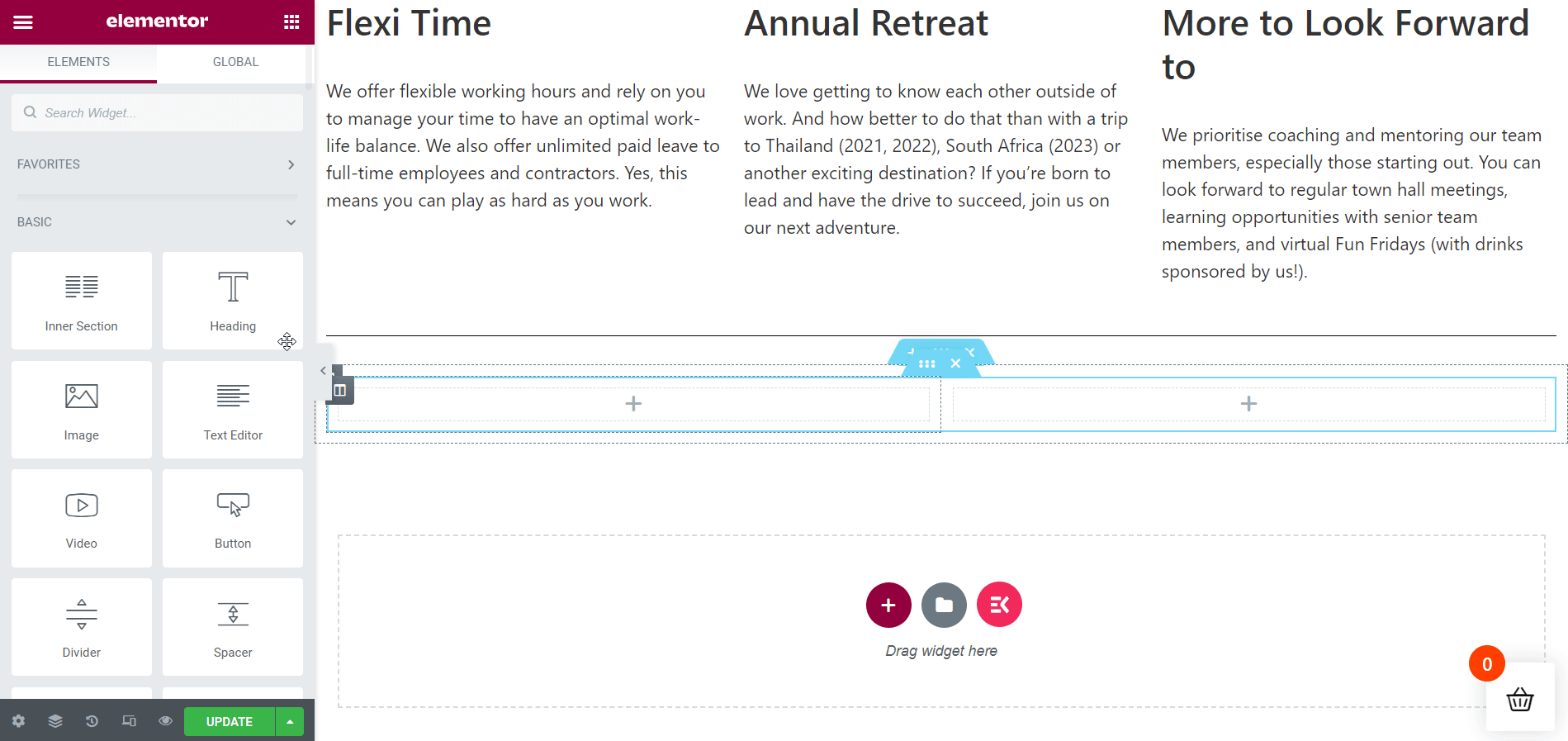 بعد ذلك ، أضف التفاصيل الضرورية في العمود الثاني عن طريق سحب عنصر واجهة مستخدم ElementsKit وإفلاته مرة أخرى. قم بتحرير نص المحتوى الخاص بك كما كان من قبل وقم بتخصيصه أيضًا إذا لزم الأمر.