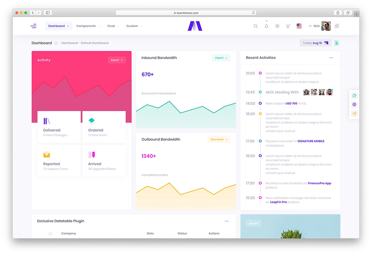إذا كنت تبحث عن شيء مختلف قليلاً في المظهر ، فإن Notika هو قالب المشرف المجاني الوحيد الذي يجب مراعاته. بينما تتميز تخطيطات لوحة القيادة في معظمها بمظهر ملء الشاشة مع التنقل في الشريط الجانبي العلوي أو في الغالب ، إلا أن Notika تبرز بشكل كبير. يحتوي على تخطيط محاصر بقائمة "منسدلة" رائعة مع رسوم متحركة سلسة ستجعل التجربة أكثر إثارة. يبدو Notika تقريبًا كصفحة نمط مجلة ولكنها لا تشبه في ميزاتها وأصولها.