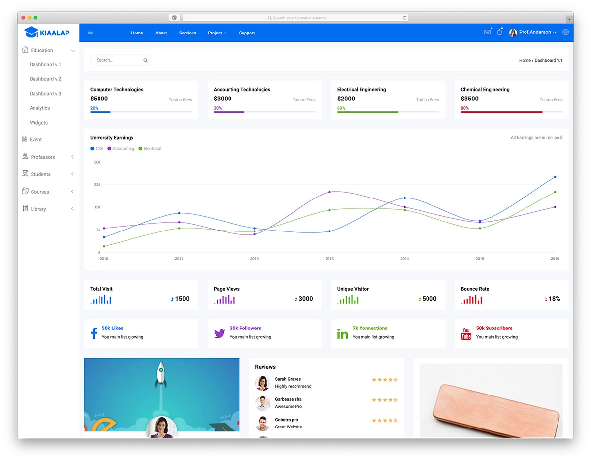 إن Kiaalap هو كل شيء وكل ما تحتاجه عند اختيار قالب الإدارة المجاني المثالي لتطبيقك أو موقع الويب الخاص بك. لكنها ستكون الأنسب للمدارس والجامعات والكليات. لا يوجد شيء مفقود حقًا في الحزمة الهائلة من العناصر والصفحات والمكونات الإضافية. بالنسبة لأداة مجانية ، يبدو أن Kiaalap شبيهة للغاية ، وهذا هو بالضبط هدفنا. نحاول دائمًا طرح أكبر قدر ممكن على الطاولة حتى تتمكن من تشغيل صفحاتك ومشروعك بنجاح دون الحاجة إلى إنفاق عشرة سنتات.