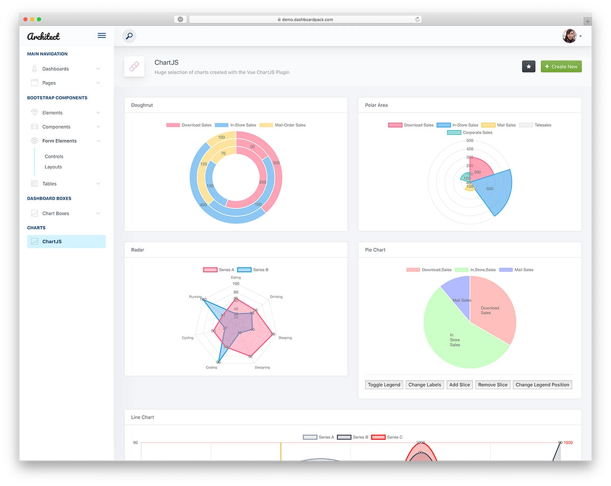 علاوة على ذلك ، يمكنك أيضًا الحصول على أكثر من خمسين عنصرًا مفيدًا ، وأكثر من ثلاثين من أشكال مربع الرسم البياني ، والمكونات الإضافية ، وعناصر واجهة المستخدم للنماذج والمكونات ، والجداول ، وحزم الرموز المختلفة. بالطبع ، يعد ArchitectUI أيضًا مستجيبًا تمامًا ومتوافقًا عبر المستعرضات. بمعنى آخر ، سيعمل مشرفك بلا عيب بغض النظر عن الجهاز والنظام الأساسي.