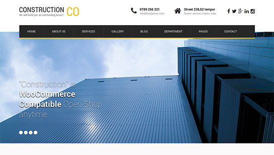 يعد SKT Construction Pro أحد أفضل سمات WordPress المعدنية الثقيلة التي تأتي مع الكثير من الوظائف لمساعدة صناعة البناء على إنشاء موقع ويب فعال . يأتي مع شريط تمرير علوي به تحكم في الرسوم المتحركة ووقت توقف مؤقت. يمكنك إضافة أقسام إلى صفحتك الرئيسية.
