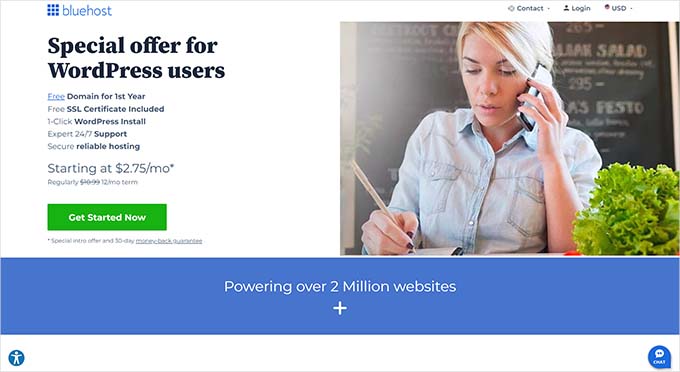 - يمكنك استخدام قسيمة Bluehost الخاصة بنا للحصول على خصم يزيد عن 75% + نطاق مجاني.
