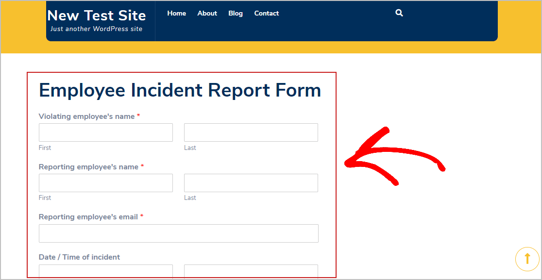 الآن ، انقر فوق معاينة ، وسترى نموذج تقرير الحادث الخاص بك كما سيظهر على موقع الويب الخاص بك.