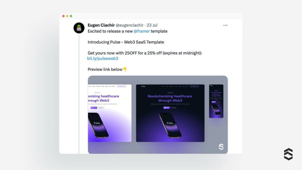 - الترويج على منصات مختلفة: شارك أخبار إطلاق النموذج الخاص بك على منصات التواصل الاجتماعي مثل Twitter و LinkedIn و Dribbble و Behance و Creative Market. بالإضافة إلى ذلك ، استكشف منصات أخرى مثل Product Hunt و Layers.to و Instagram و Facebook و subreddits محددة و UI8 و Themeforest و Craftwork للحصول على رؤية إضافية.