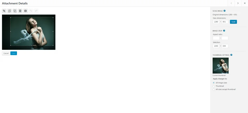 من الممكن تحميل الصور التي يتجاوز عرضها حجم موقعك ، والتي سيعرضها موقع الويب الخاص بك في صور مصغرة. لكن هذا لن يلغي حقيقة أن لديك صورة كبيرة على موقعك تؤدي إلى إبطاء موقعك. يمكنك قص حجم الملف إلى أكثر من النصف عن طريق تغيير الحجم.