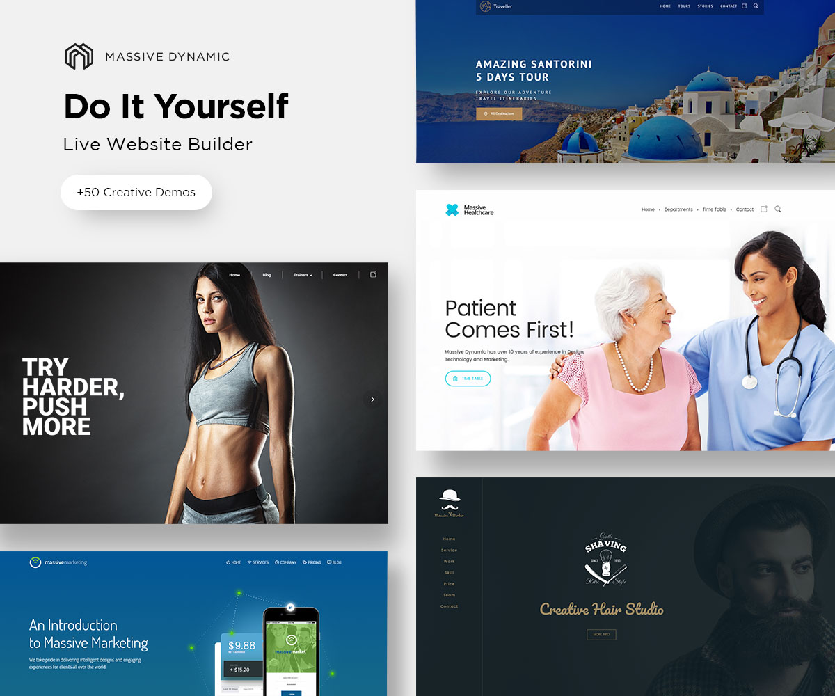 Massive Dynamic هو منشئ مواقع ويب ذكي متعدد الأغراض من WordPress. إنها منصة بناء مواقع ويب واسعة الحيلة بشكل ملحوظ. أكثر من مجرد موضوع ، تحزم Massive Dynamic منشئ موقع ويب مباشر بالكامل في الوقت الفعلي تحت الغطاء ، حيث يمكنك تحرير التخطيطات ونشر الرموز القصيرة وتخصيص جميع الإعدادات ببضع نقرات.