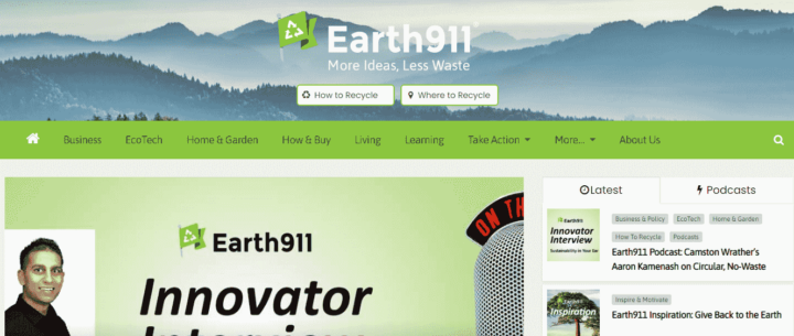 Earth911 هي مدونة استدامة توفر معلومات وموارد رائعة تتعلق بإعادة التدوير والاستدامة والمسؤولية البيئية.