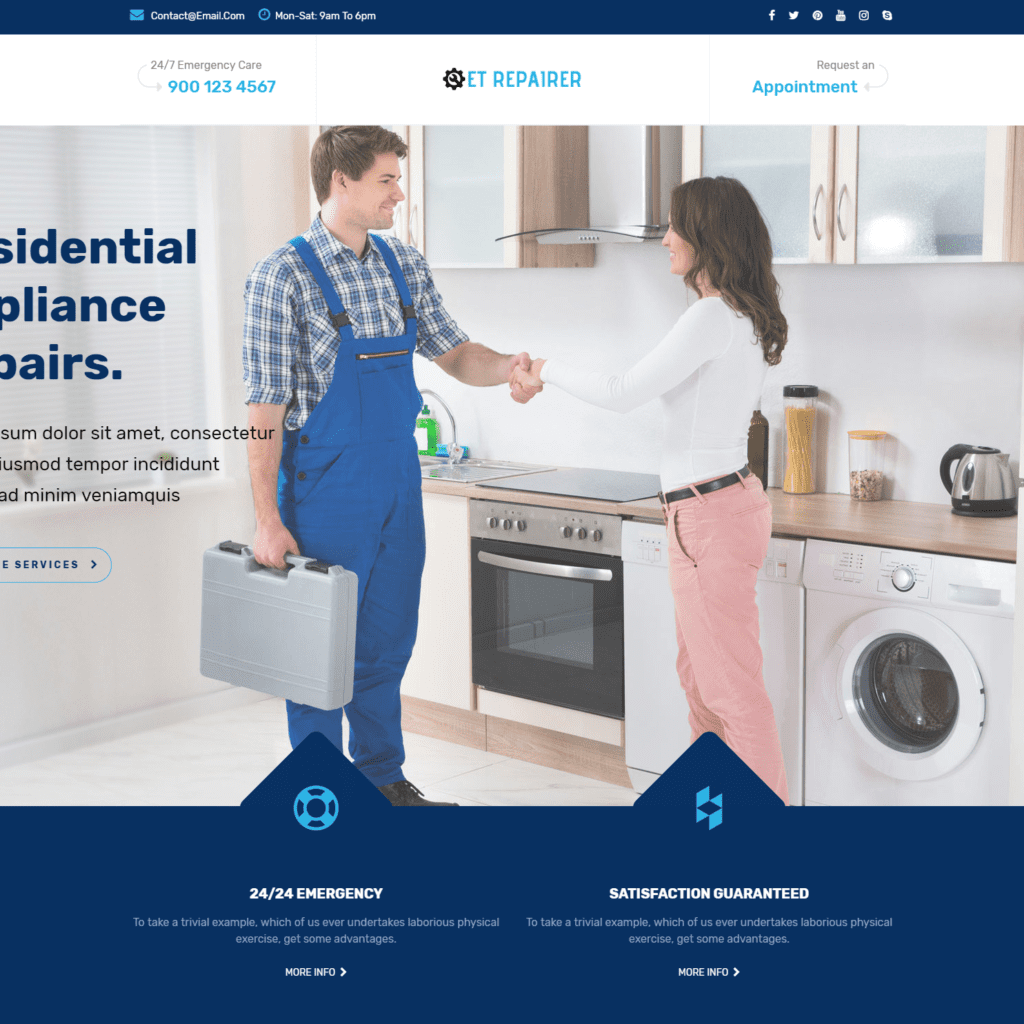 ET Repairer هو اقتراح آخر لقالب Joomla Repair & Install الذي تم تطويره باستخدام أحدث إصدار من Helix Ultimate الذي يجلب لك العديد من الميزات الجديدة للتحقيق فيها. بالإضافة إلى ذلك ، تدعم Joomla الفنية 8 ألوان محددة مسبقًا بحيث يكون موقعك ملونًا ومميزًا من بين الألوان الأخرى. علاوة على ذلك ، يعد المظهر فكرة جيدة لعرض الفنيين أو السباكين ومهارات كهربائيين والتسجيلات من خلال تنظيم المحتوى المذهل مع تأثيرات التنقل الجميلة. علاوة على ذلك ، يأتي ET Repairer مزودًا بالعديد من الميزات الحديثة جنبًا إلى جنب مع تصميم مستجيب بنسبة 100٪ ، وعصري وأنيق على أي نوع من حلول الشاشة ، كما أنه قابل للتخصيص بالكامل باستخدام أدوات مساعدة قوية.