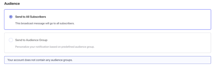 Wenn Sie noch weiter nach unten scrollen, können Sie die Zielgruppeneinstellungen sehen, um auszuwählen, wer Ihre automatische Push-Benachrichtigung erhalten soll.