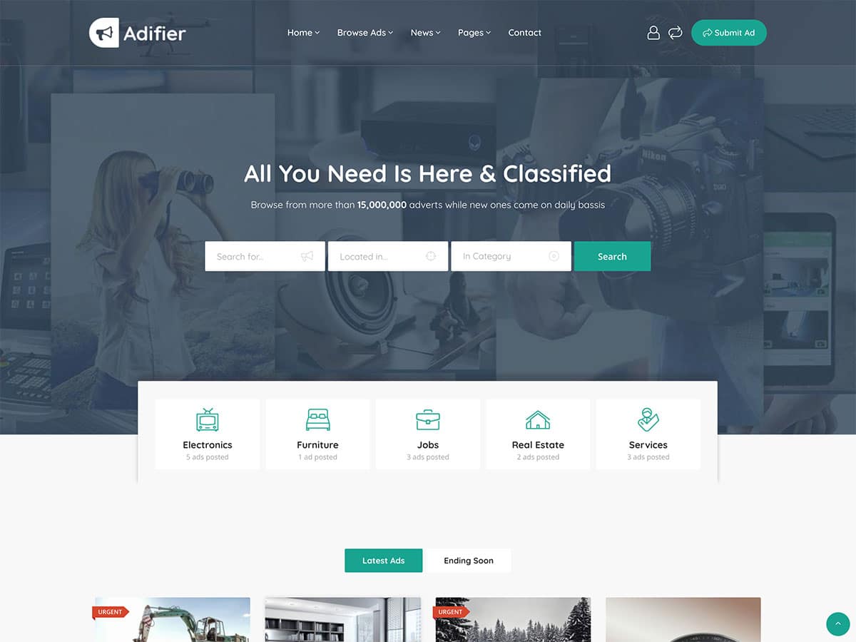 Adifier ist ein funktionsreiches WordPress-Theme, mit dem fast jede Art von Kleinanzeigen-Website erstellt werden kann. Dieses Thema bietet nicht nur eine gute Auswahl an verschiedenen Vorlagen, sondern ist auch in hohem Maße konfigurierbar und kann für fast jede Art von Projekt eingerichtet werden.