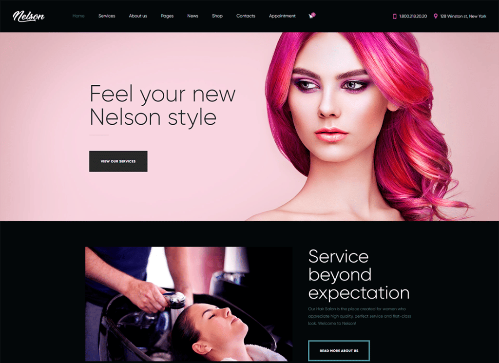 Nelson WordPress-Theme ist eine sofort einsatzbereite Webdesign-Lösung für Schönheits- und Friseurseiten. Mit seiner Hilfe können Sie eine Website für Schönheitssalon, Tattoo-Studio, Tattoo-Shop, Piercing, Barttrimmen, Tattoo-Studio, Schönheitssalon, Spa-Salon, Herrenmode usw. erstellen. Das Theme ist vollständig in Elementor integriert und unterstützt Gutenberg. Es enthält eine Sammlung von 8 Homepage-Demos, die jeweils sofort online geschaltet werden können. Das Thema ist auch perfekt für Blogging-Anforderungen geeignet. Es enthält schöne Blog-Layouts, die Sie mit oder ohne Änderungen zu Ihrer Website hinzufügen können. Die WooCommerce-Unterstützung und die Verfügbarkeit vorgefertigter WooCommerce-Seiten sollten nützlich sein, wenn Sie sich entscheiden, das Thema zum Starten Ihres Online-Shops zu verwenden.