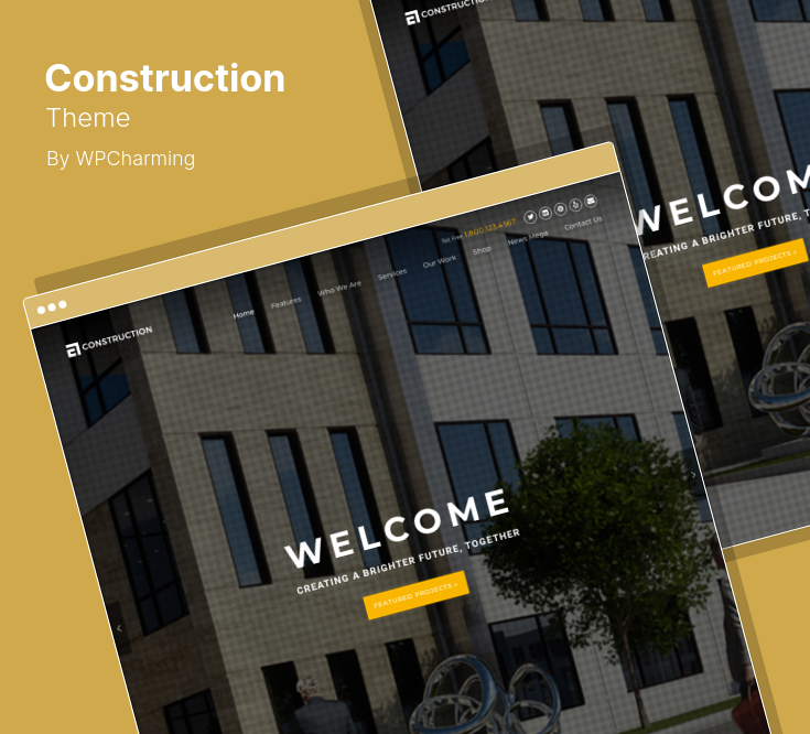 Mit diesem modernen Thema können Sie alle Arten von Baumaterial, Bauprozessen und architektonischen Entwürfen in mehreren vorgefertigten Layouts demonstrieren.