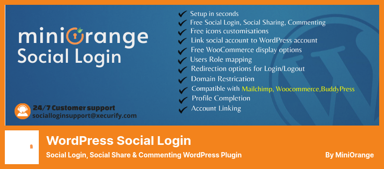 Super Socializer unterstützt zahlreiche Social-Media-Plattformen und ermöglicht es Ihnen, Blog-Posts und Seiten über Social Media zu teilen und zu kommentieren. Es ist eine einfach zu installierende, kostenlose WooCommerce-Erweiterung, die Ihnen viele Optionen für die Bereitstellung von Social-Login-Funktionen bietet.