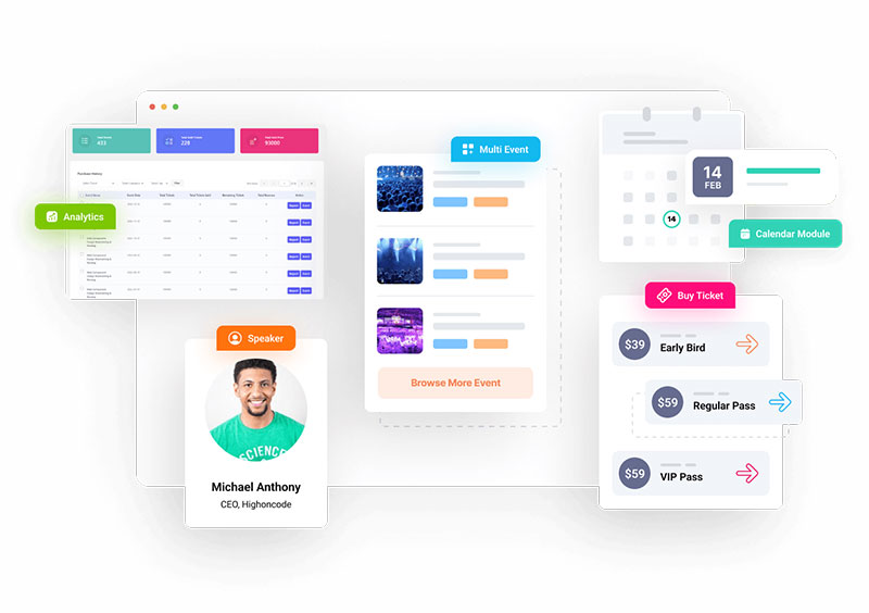 Eventin ist ein Event-Plugin für WordPress, mit dem Sie Events organisieren und bewerben können. Zu den Hauptfunktionen gehören anpassbare Veranstaltungsseiten, die Integration mit Top-Zahlungsgateways und die Möglichkeit, Veranstaltungspläne, Ticketverkäufe mit unterschiedlichen Preisniveaus und Teilnehmerdetails zu verwalten. Es bietet eine reibungslose, einfach zu navigierende Oberfläche zum Erstellen und Verwalten von Ereignissen.