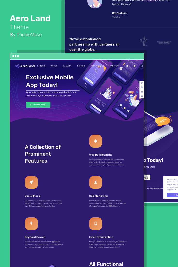 Das AeroLand-Design enthält viele vorgefertigte Layouts, die reaktionsschnell und anpassbar sind, was es zu einer idealen Wahl für IT-Unternehmen und Tech-Startups macht, um schnell leistungsstarke Zielseiten zu erstellen.