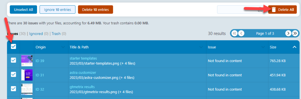 Dies wird Ihnen helfen, eine sauberere Medienbibliothek zu haben und wertvollen Speicherplatz zu sparen. Wir empfehlen Ihnen, dies regelmäßig zu tun, um Ihre Medienbibliothek zu optimieren und sauber zu halten.