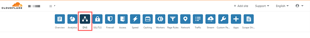1. Wählen Sie die Website im Cloudflare-Panel aus und klicken Sie auf die Registerkarte „DNS“, wie unten gezeigt: