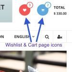 Sobald das WooCommerce- und das YITH-WooCommerce-Wunschliste-Plugin aktiviert sind, wird wieder das Symbol für die Warenkorbseite bzw. die Warenkorbseite der Wunschliste angezeigt. Es zeigt auch die Anzahl der Artikel in den Einkaufswagen an (siehe Abbildung rechts). Der Gesamtbetrag des Warenkorbs und die Anzahl der Artikel werden also ständig aktualisiert, wenn Sie weitere Artikel in den Warenkorb legen.
