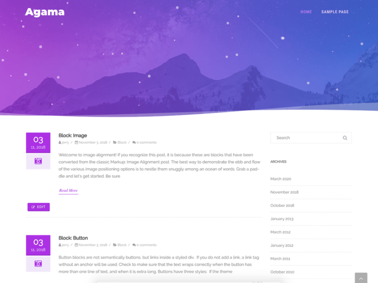 Agama ist eine weitere fantastische WordPress-Theme-Option, die Parallax-Effekte nutzt.