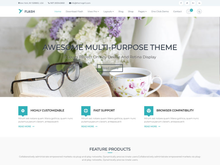 Dieses Thema lässt sich in Flash Toolkit und SiteOrigin Page Builder integrieren, sodass Sie Ihr eigenes Design von Grund auf neu erstellen können, wenn Sie möchten. Es ist mit WooCommerce kompatibel, sodass Sie auch einen Online-Shop aufbauen können. Mit vielen Anpassungsoptionen wie Farben, Schriftarten und Kopfzeilenstilen können Sie das Flash-Thema problemlos als Basis verwenden, um jede Art von Website zu erstellen, die Sie möchten, von einer Unternehmensagentur bis hin zu einem Portfolio für Hochzeitsfotografie. Es liegt an Ihnen, was Sie daraus machen.