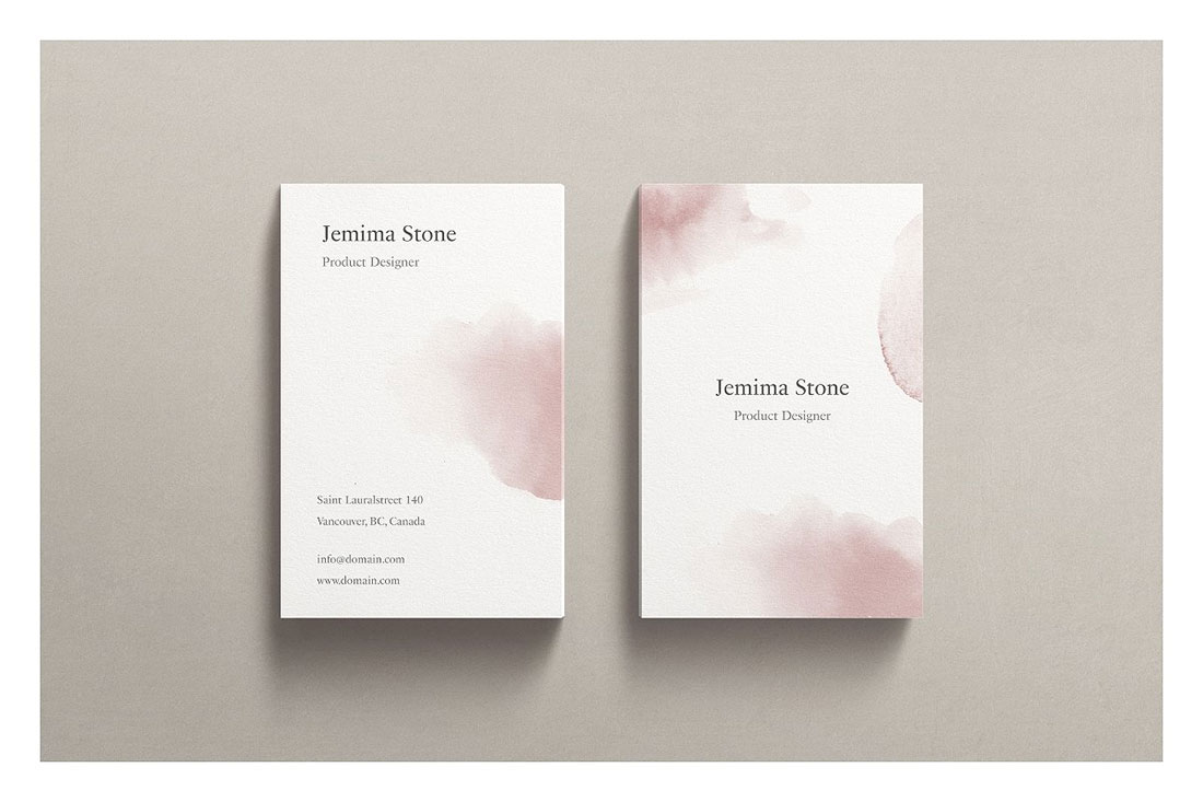Eine andere Möglichkeit, Ihr Visitenkartendesign zu präsentieren, besteht darin, eine Modellvorlage mit Kartenstapeln zu verwenden. Dieses Layout bietet Ihnen die Möglichkeit, entweder zwei verschiedene Visitenkarten zu erstellen oder eine für die Vorder- und die andere für die Rückseitengestaltung zu verwenden. Wie Sie bemerken, können Sie zwei verschiedene Bilder hochladen, aber das ist nicht alles, was Sie mit diesem bemerkenswerten Modell tun können. Sie können die Farben der Karten sowie die Farbe des Seitenstapels ändern. Mit nur wenigen Klicks können Sie dieses Visitenkarten-Vorlagenmodell vollständig personalisieren und mit einem Branding versehen und für den Kunden bereithalten.