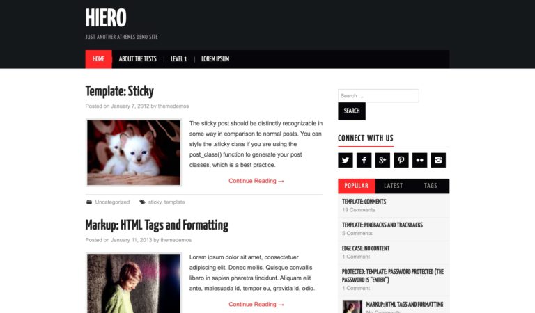 Auf der Suche nach einem Magazin, das sowohl minimalistisch als auch stilvoll ist? Suchen Sie nicht weiter als das Hiero-Design, vollgepackt mit benutzerdefinierten Widgets, Thread-Kommentaren und schönen Farboptionen. Mit dem responsiven Design können Sie vorgestellte Bilder einfügen, um Menschen in Ihr Magazin zu ziehen, und die Logo-Upload-Funktion ist immer nützlich, um sich von Site-Dateien fernzuhalten.