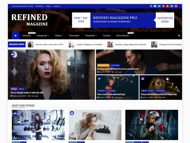 Metro Magazine verwendet moderne Schriftarten und Farben sowie eine ansprechende Benutzeroberfläche, um auf allen Geräten gut auszusehen. Es ist eine klare Lösung für alle, die daran interessiert sind, ein Online-Magazin zu erstellen. Das Gute am Thema Metro Magazine ist, dass Sie nicht unbedingt eine bestimmte Nische benötigen, um es zu verwenden. Sie können es für Sport, Lifestyle, Essen, Reisen, Veröffentlichungen oder jede andere Art von Zeitschrift verwenden, die Ihnen einfällt.