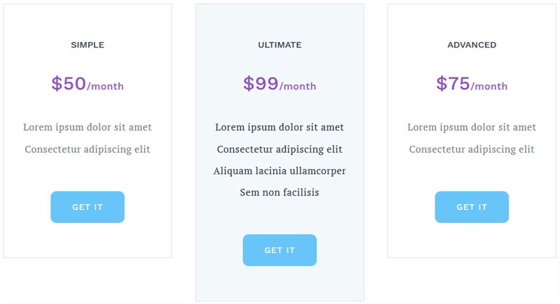 - Präsentieren Sie Vergleichs- und Preistabellen mit Hilfe des Price Box-Blocks. Der Block wird mit einem vorgefertigten, speziell angefertigten Layout geliefert, das Sie einfach mit Ihren Daten ausfüllen müssen.