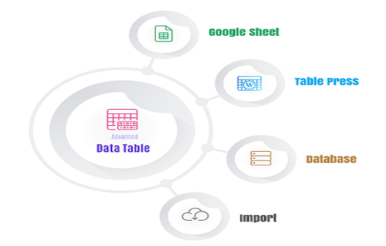 In Elementor gibt es dafür einen leeren Platz, und Happy Data Table füllt diesen einfach hervorragend aus. Es verfügt über mehrere Tabellenlayouts und Optionen. Daher können Sie eine Tabelle direkt aus Google Sheets, Database oder Table Press importieren.