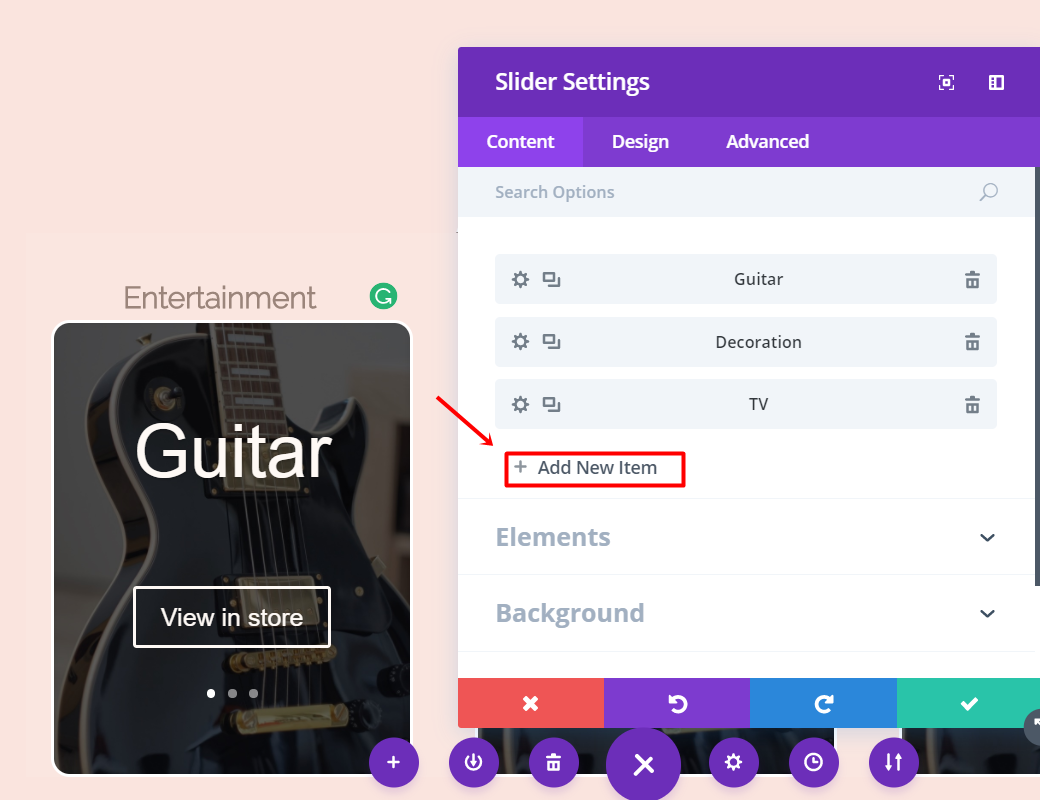 Fahren Sie fort, fügen Sie eine neue Folie hinzu. Laden Sie innerhalb der Folie ein Hintergrundbild von einem der Artikel hoch, die Sie in die Geschenkliste in der Unterkategorie Hintergrund der Registerkarte Inhalt einfügen möchten. Geben Sie als Nächstes den Namen des Elements und den Schaltflächentext in der Unterkategorie Text derselben Registerkarte ein. Ändern Sie auch die URL in der Unterkategorie Link. Fügen Sie innerhalb einer Kategorie so viele Folien hinzu, wie Sie benötigen, und wiederholen Sie dasselbe.