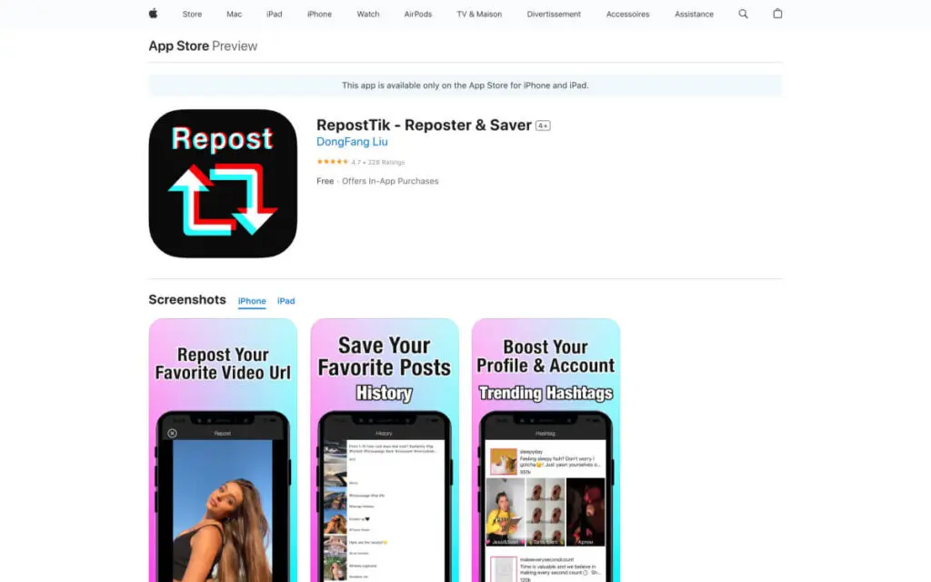 Repost Tik ist eine beliebte App, mit der TikTok-Benutzer ihre Lieblings-TikTok-Videos reposten und mit ihren eigenen Followern teilen können. Mit Repost Tik können Sie ganz einfach Inhalte von anderen TikTok-Benutzern finden und teilen, was Ihnen hilft, Ihre eigene Fangemeinde zu vergrößern und mit der TikTok-Community in Kontakt zu treten.