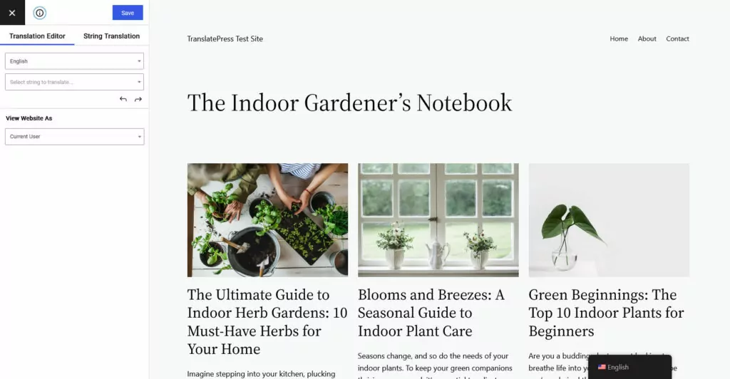 Wenn Sie Hilfe bei der Übersetzung Ihrer lokalisierten Inhalte in eine andere Sprache benötigen, probieren Sie TranslatePress aus. Dadurch wird die Konvertierung Ihrer Website in eine andere Sprache sehr schnell und einfach.