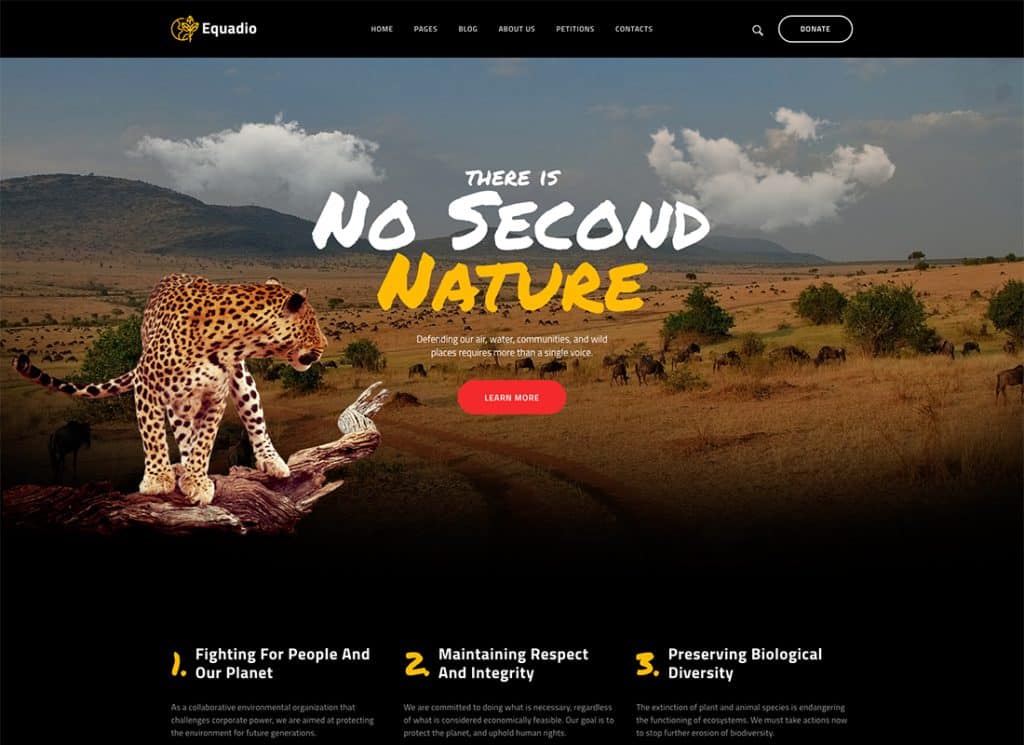Equadio ist ein starkes, anpassungsfähiges und trendiges WordPress-Theme für Petitionen und Wildtierschutz, das für eine Vielzahl von Zwecken wie Crowdfunding, Petitionswebsites, Ökologieaktivismus, soziale Kampagnen und moderne soziale Bewegungen verwendet werden kann. Dieses Theme basiert auf dem leistungsstarken ThemeREX-Framework und bietet fünf verschiedene Homepage-Layouts. Es wurde mit Elementor erstellt, einem flexiblen WordPress-Seitenersteller. Ausgestattet mit einer Vielzahl von Shortcodes und Widgets ist es bereit für SEO und verfügt über eine vollständige Petitionsfunktion (mit SpeakOut! Email Petitions) zum Online-Unterzeichnen von Petitionen. Darüber hinaus enthält es das Give – Donation-Plugin für Fundraising, MailChimp für WP, The Events Calendar und mehr.