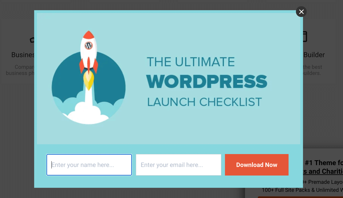 Sie können ein Popup wie dieses erstellen, indem Sie WPForms und OptinMonster zusammen verwenden. Sie müssen keinen Code schreiben, um ein Popup wie im Beispiel zu erstellen.