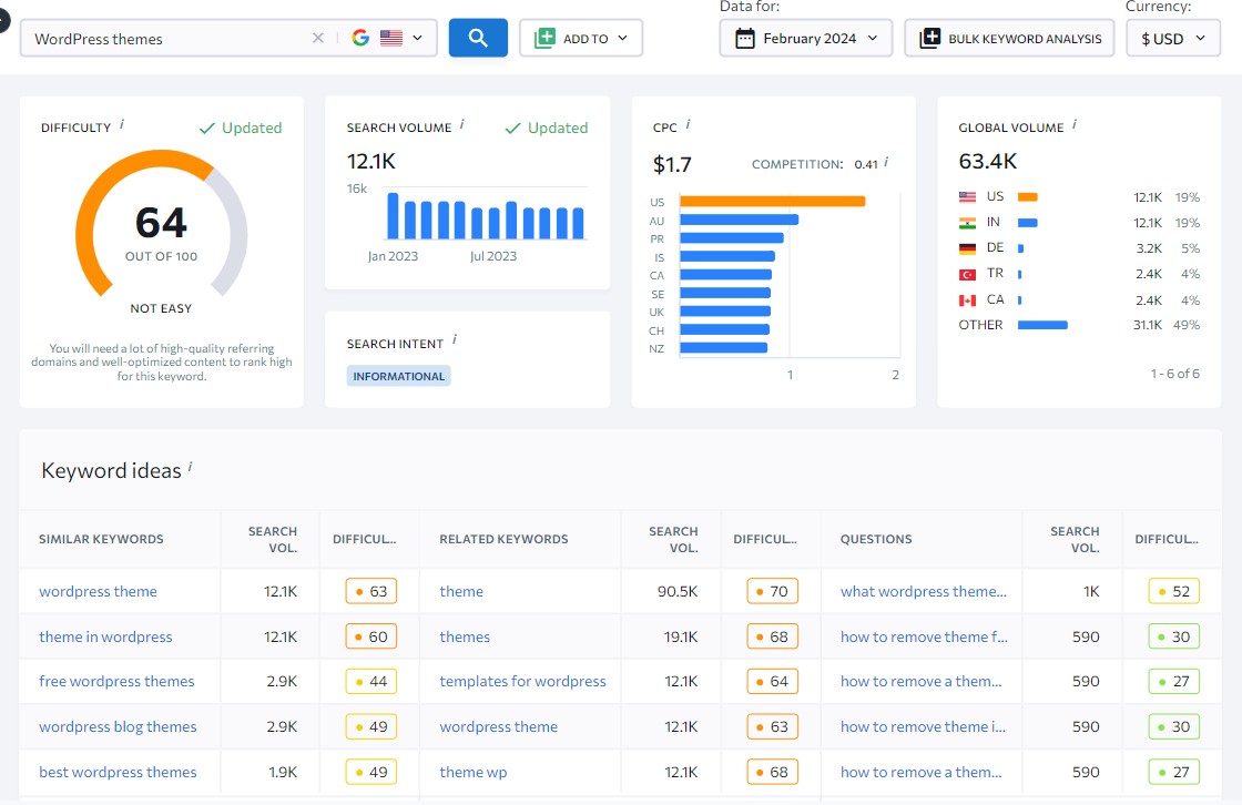 Sowohl SE Ranking als auch SEMrush sind großartige Tools für die Keyword-Recherche.