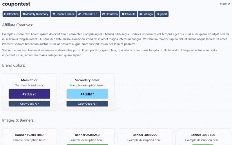So wie es sich anhört, können Sie das Aussehen des Affiliate-Dashboards anpassen. Sie können die Farben von Elementen wie Registerkarten und Schaltflächen ändern, um sie an das Branding Ihrer Website anzupassen.