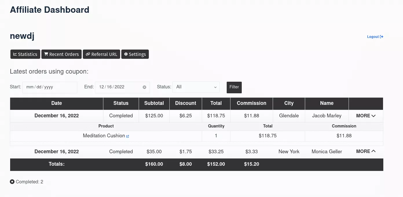 Es gibt ein fantastisches Plugin, das Ihnen bei der Verwaltung von WordPress-Affiliate-Gutscheinen hilft. Es lässt sich nahtlos in WooCommerce integrieren und bietet eine moderne Schnittstelle für Ihre Partner, um ihre Konten zu verwalten und Statistiken anzuzeigen.