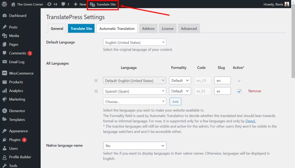 1. Installieren Sie TranslatePress und richten Sie Sprachen ein